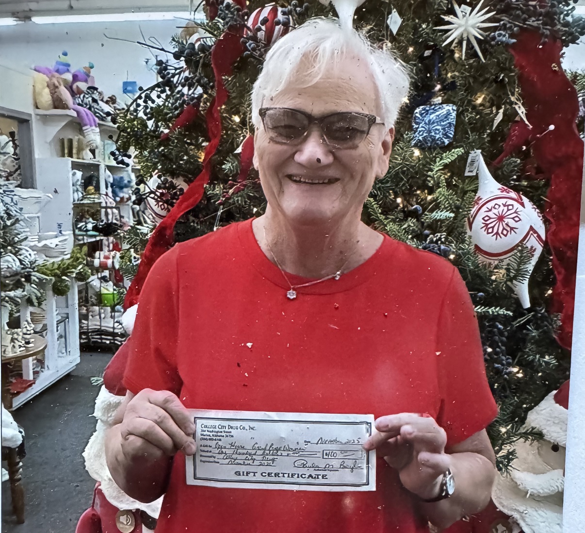 College City Drug would like to thank everyone who came out and supported its Christmas Open House. Sherer Averette was the grand door prize winner of a $100 store gift certificate. Other door prize winners included Sharon Horton, Lynette Tubbs, Tracey Horton, Rachel Parker, Leslie Core, and Ashleigh Parker. The winner of the candy dish guessing game was Joni Broughton. The actual candy count was 96. “Thank you again for supporting our open house!” said representatives of College City Drug.